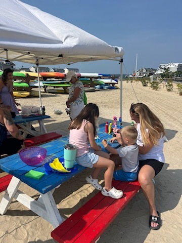 Each Monday and Wednesday, all children are invited to do arts and crafts at the Bay Beach. Here are photos of the masterpieces we created.