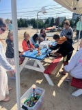 Activities included decorating bikes and wagons for July 4th parade, July 4th parade, Flag raising, Castle contest, Water melon wrangle and Sand Art creation.